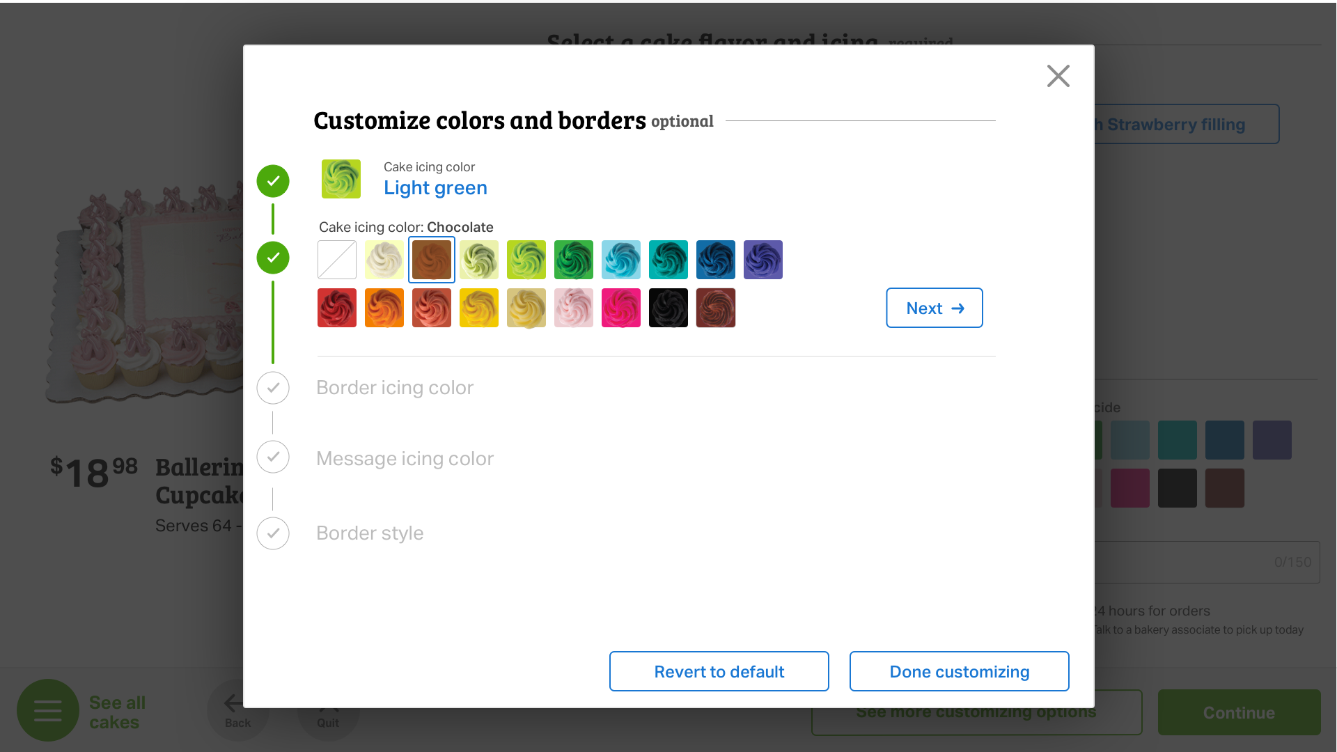 We took a deep dive to know everything about the bakery business, it was operating smoothly and was perfected by bakery associates. We wanted to create a smooth transition between the offline system to digital transformation. Understanding operations, supply-chain, order fulfillment, competitive online solutions and the service model. We started by replicated existing paper experience to online and week after week talked to our customers. We understood a lot about how our customers wanted to customize cakes and what was important to them and the associates making the cake for those customers.