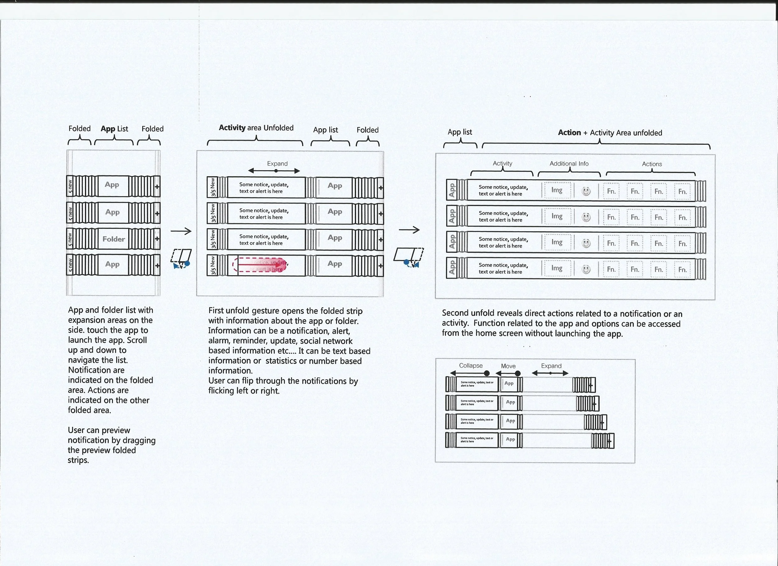 Sketched home-UI, music apps, reading apps, email apps, watch faces and numerous other ideas with various folding patterns, form factors, wearables and possibilities. We made videos and mocks in hi-fidelity for some executive buy-ins and created intellectual property for some big ideas. Ultimately this project became the most strategic project that would go on to define the design leadership of Samsung in the industry and become a key differentiator. Our proposed roadmap to pursue mobile devices in order of curved then partially bendable, then foldable, rollable and finally fully flexible was accepted by mobile and display business divisions and became part of their business strategy.