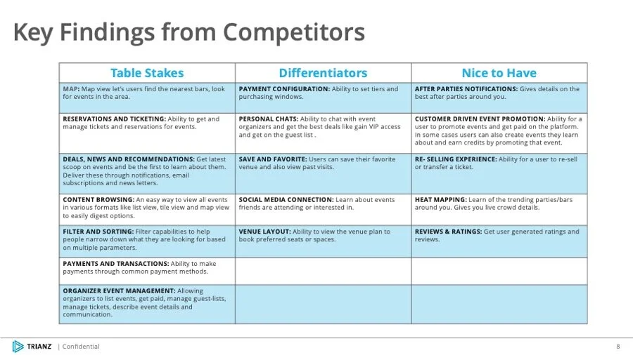 In order to create a market differentiator a deep understand and value proposition of competitors was needed so a hypothesis for a product market fit could be created