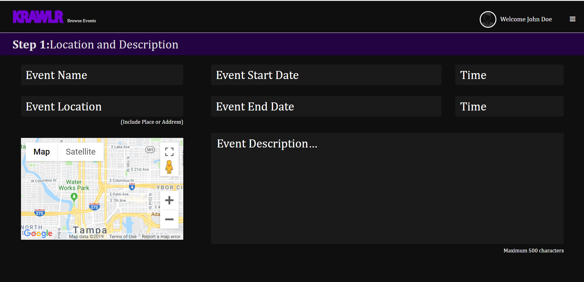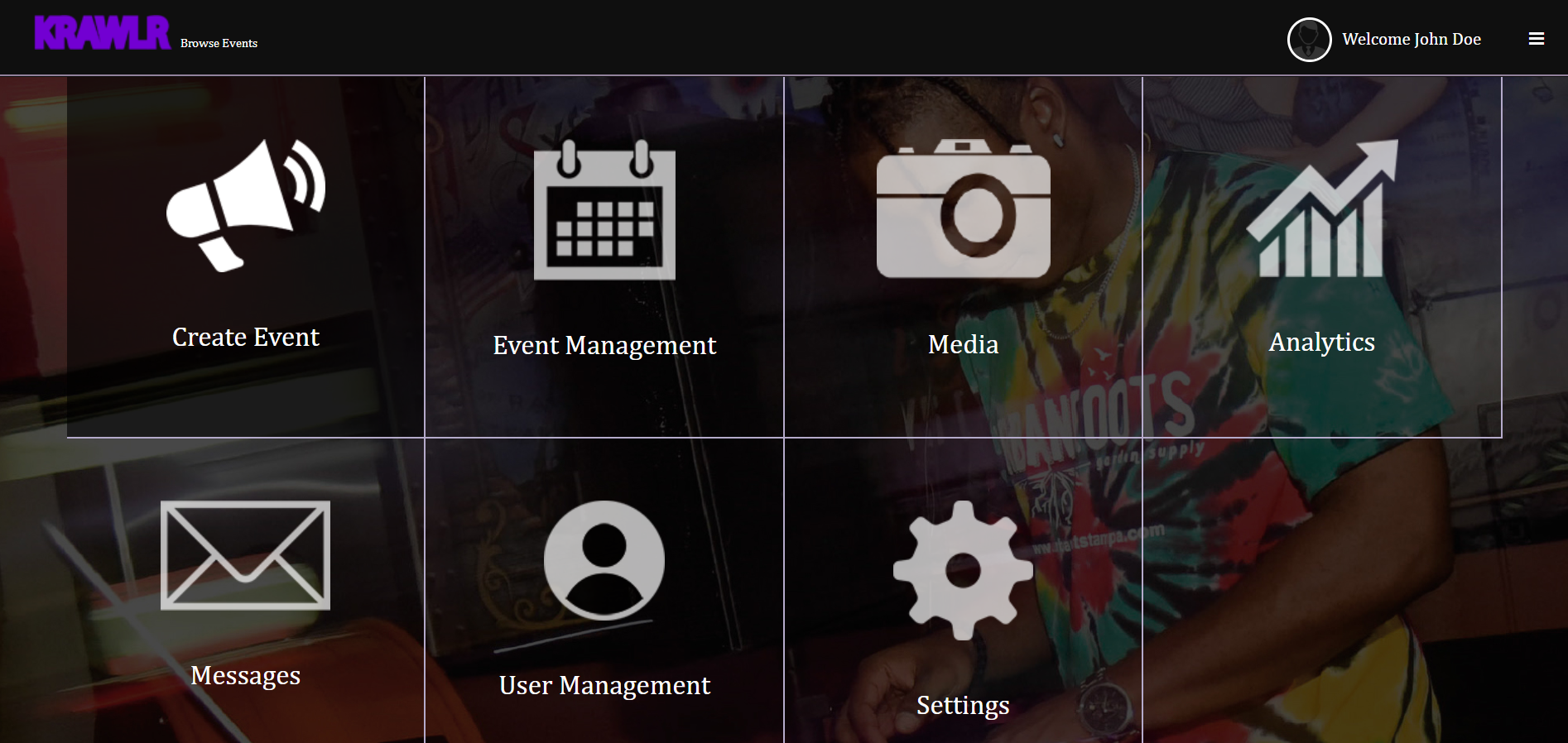 KRAWLR is a platform for event planning for customers, venue owners and promoters. It is a platform focused on connecting customers directly to live and music event venues. It provides a network for promoters to stay up to date with new events being released weekly at numerous venues while building a customer network they can target for various music events based on customer preferences.