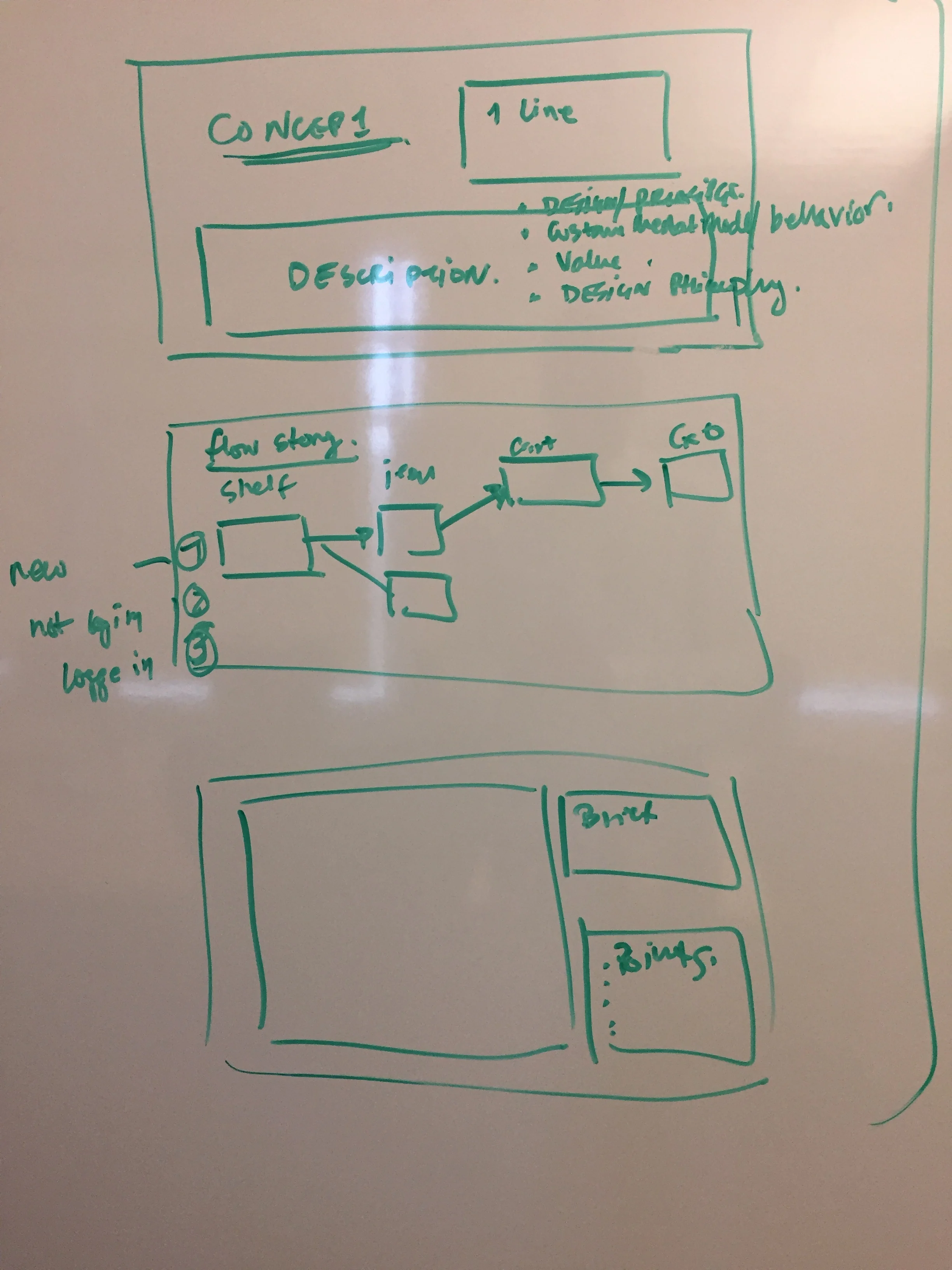 Our researcher introduced us to a method called conceptual research where we take our broad concepts and write them up like a comic strip. We write stories and narratives that will explain the key effects of our various concepts and have users give us feedback around how they would value that concept.